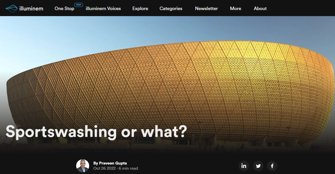 Every other day we hear of a new manifestation of greenwashing. While on the one hand companies and countries have vied for green pledges leading to an illusory #netzero , they resort to the likes of sportswashing or nature rinsing to delude the world. That has become a sport by itself!