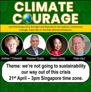Come and join us on the 21st of April, 3pm SG time, where we hope to challenge some assumptions and change some minds #ClimateCourage#ClimateEmergency#UncommonCourage.“