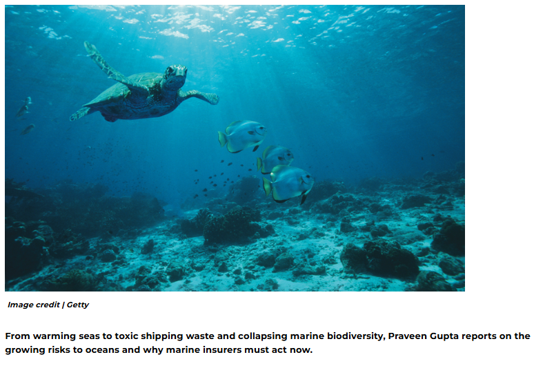 https://www.linkedin.com/feed/update/urn:li:activity:7369182036827291649/: From #warmingseas to #toxicwaste and collapsing #marinebiodiversity – human driven onslaught on the #oceans is relentless. I highlight some of these growing risks in this Op-ed: https://lnkd.in/dVTJA2vQ – for the Journal of the Chartered Insurance Institute.