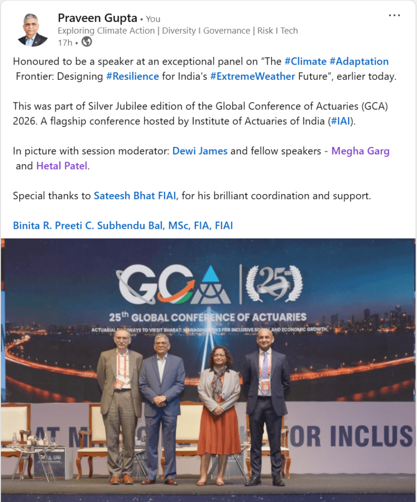 Panel discussion: 25th Global Conference of Actuaries (GCA), 2026