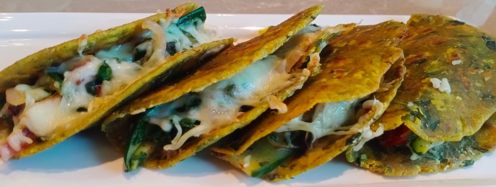The two sets of methi thepla tacos arrived for dinner in one go.